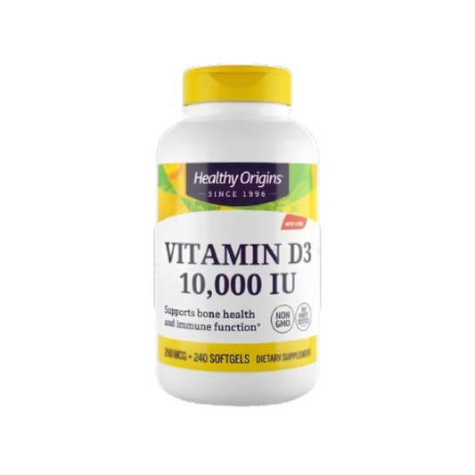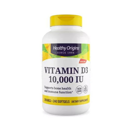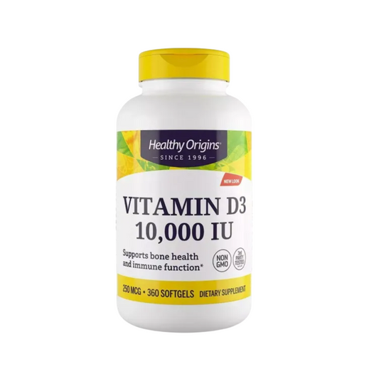 Combo Healthy Origins Vitamina D3 10.000 UI 360 Cápsulas + Nutricost Vitamina A 10.000 UI, 500 Cápsulas