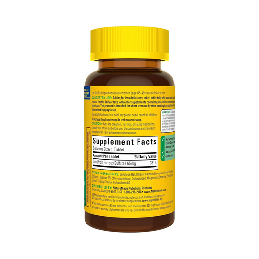 Combo 2x Nature Made Ferro 65 mg (Sulfato Ferroso 325 mg), 180 Comprimidos