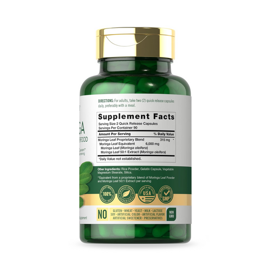 Carlyle Moringa Oleifera, Superalimento Verde Completo, 180 Cápsulas