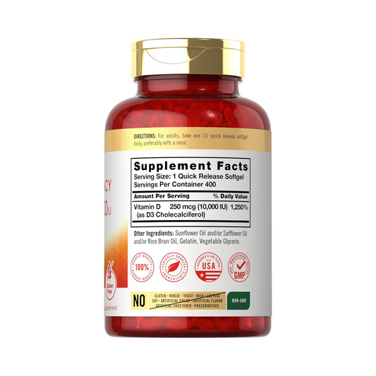 Combo 4x Carlyle Vitamina D3 400UI (10mcg), 400 Comprimidos