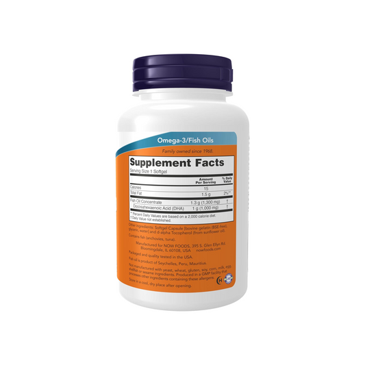 NOW Foods, DHA-1000 Brain Support, Potência Extra, 1000 mg, 90 Cápsulas Softgel