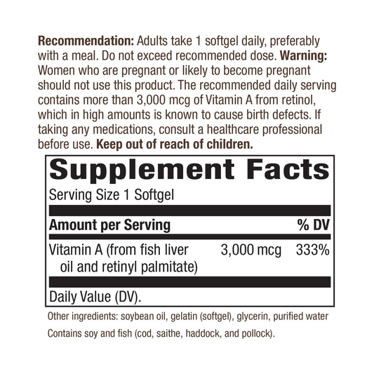 Nature's Way Vitamina A, 3000 mcg por porção, 100 Softgels