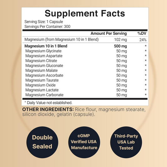 NatureBell Complexo de Magnésio 500 mg, 10 Formas Ativas, 300 Cápsulas