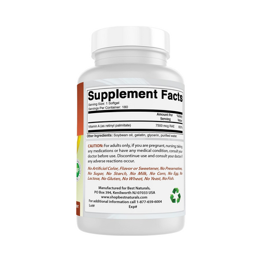 Best Naturals Vitamina A 25.000 UI (7.500 mcg), 180 Cápsulas Gelatinosas