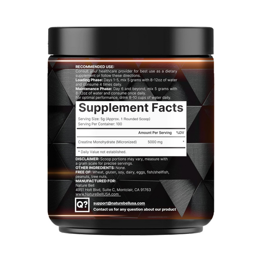 NatureBell Creatina Monohidratada 500 gramas 5000 mg por porção 100 Porções