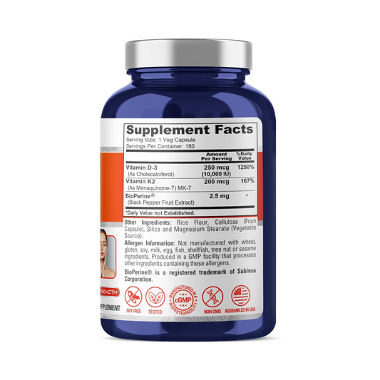 NusaPure Vitamina K2 (MK7) 200mcg + D3 10.000 UI 180 Cápsulas Vegetais