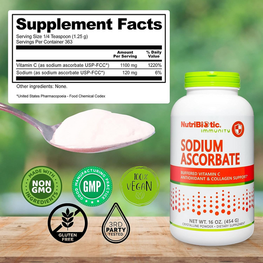 NutriBiotic, Pó de vitamina C tamponado com ascorbato de sódio, 16 Oz