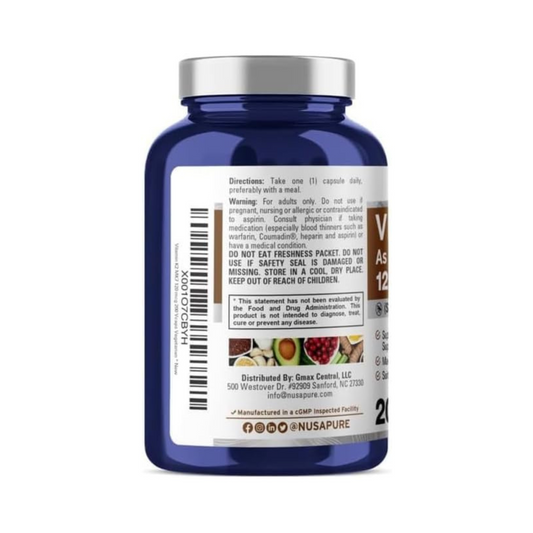 NusaPure, Vitamina K2 MK7, 120 mcg, 200 cápsulas vegetais