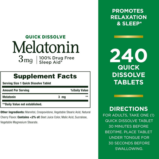 Nature's Bounty, Melatonina, 3 mg - 240 Comprimidos de Rápida Dissolução