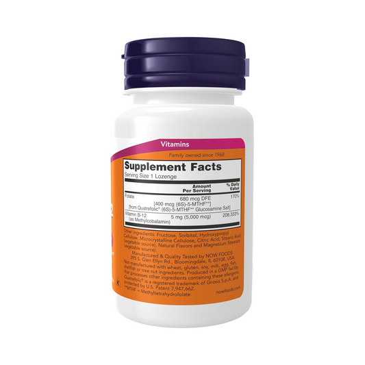 NOW Suplementos, Metil B-12 (Metilcobalamina) 5000 mcg, 60 Pastilhas
