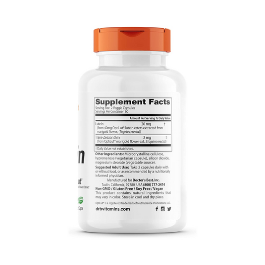 Doctor's Best, Luteína OptiLut, 20 mg, 120 cápsulas vegetais