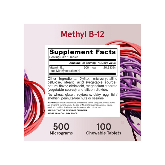 Jarrow Formulas, Methyl B-12, Cereja, 500 mcg, 100 Pastilhas Mastigáveis