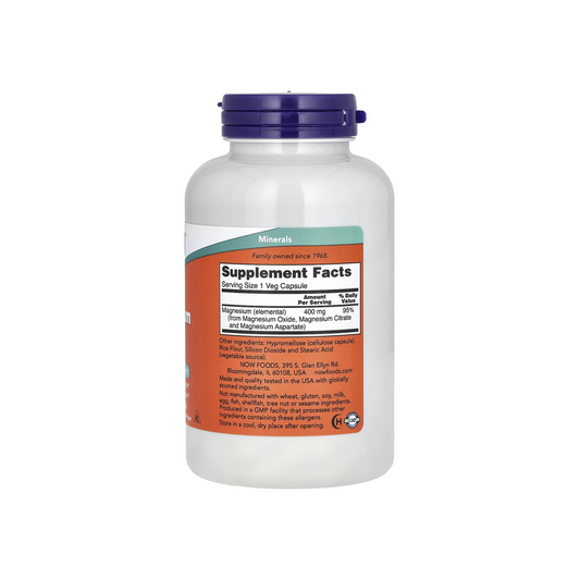 NOW Foods, Cápsulas de Magnésio, 400 mg, 180 Cápsulas Vegetais