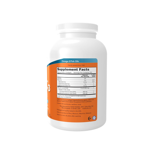 NOW Foods, Ômega-3, 1000 mg, 180 EPA 120 DHA, 500 Cápsulas Softgel