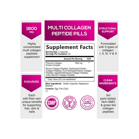 Nature's Nutrition Colágeno Para Mulheres & Homens - Tipo I, II, III, V, X 120 Cápsulas