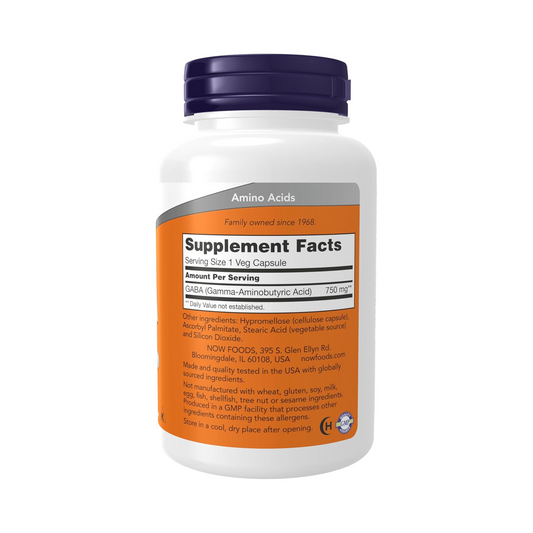 Now Foods GABA 750 mg, 100 Cápsulas Vegetais