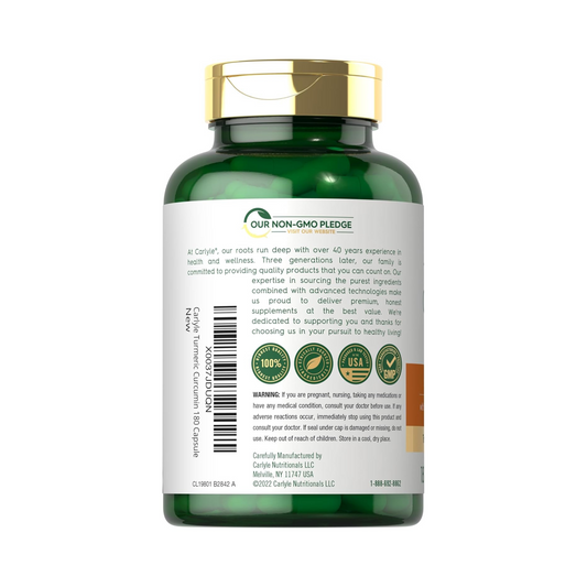 Carlyle Cúrcuma, Turmeric Curcumin, 500 mg, com Extrato de Pimenta-Preta, 180 Cápsulas