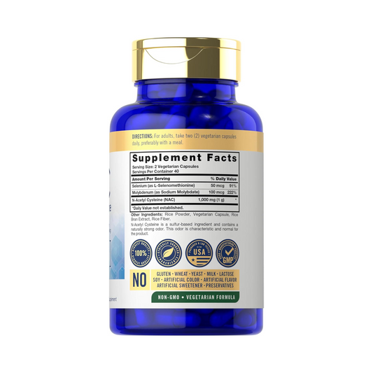Carlyle NAC 1000 mg com Selênio e Molibdênio, 80 Cápsulas Vegetarianas