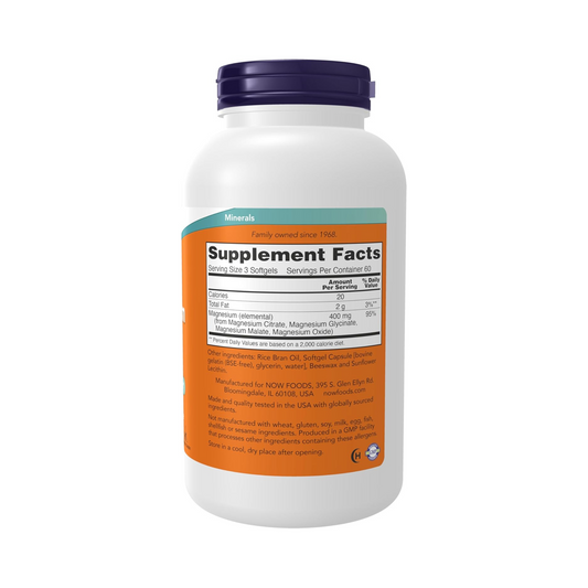 NOW Foods Magnésio Citrato com Glicinato e Malato, 180 Softgels