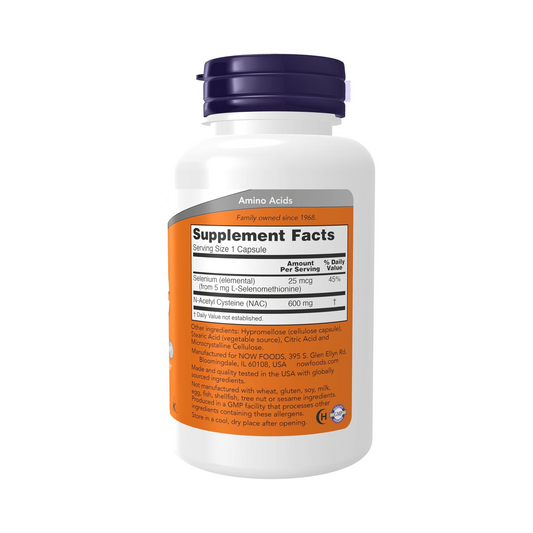 NOW Supplements NAC (N-Acetyl Cisteína) 600 mg com Selênio e Molibdênio, 100 Cápsulas Vegetarianas