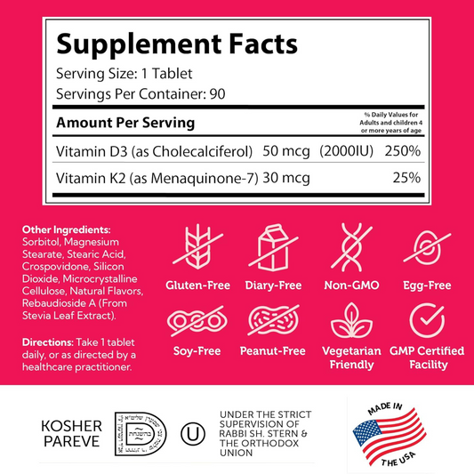 Zahler, Vitamina D3 + K2 Mastigável para Crianças, 2000 UI, Kosher, 90 Comprimidos