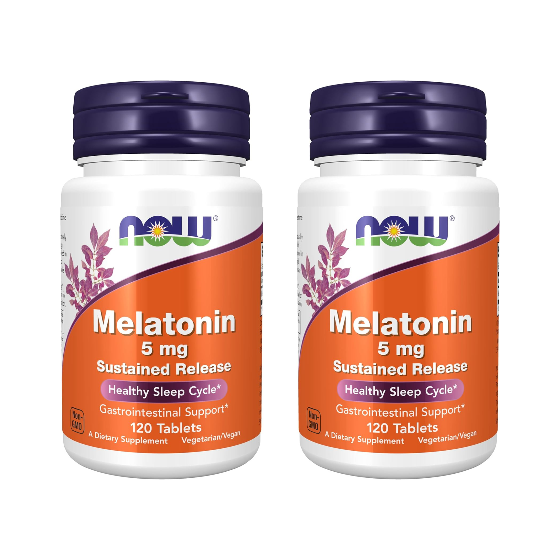 Combo 2x NOW Foods Melatonina 5 mg, Liberação Sustentada por 4 Horas, 120 Comprimidos